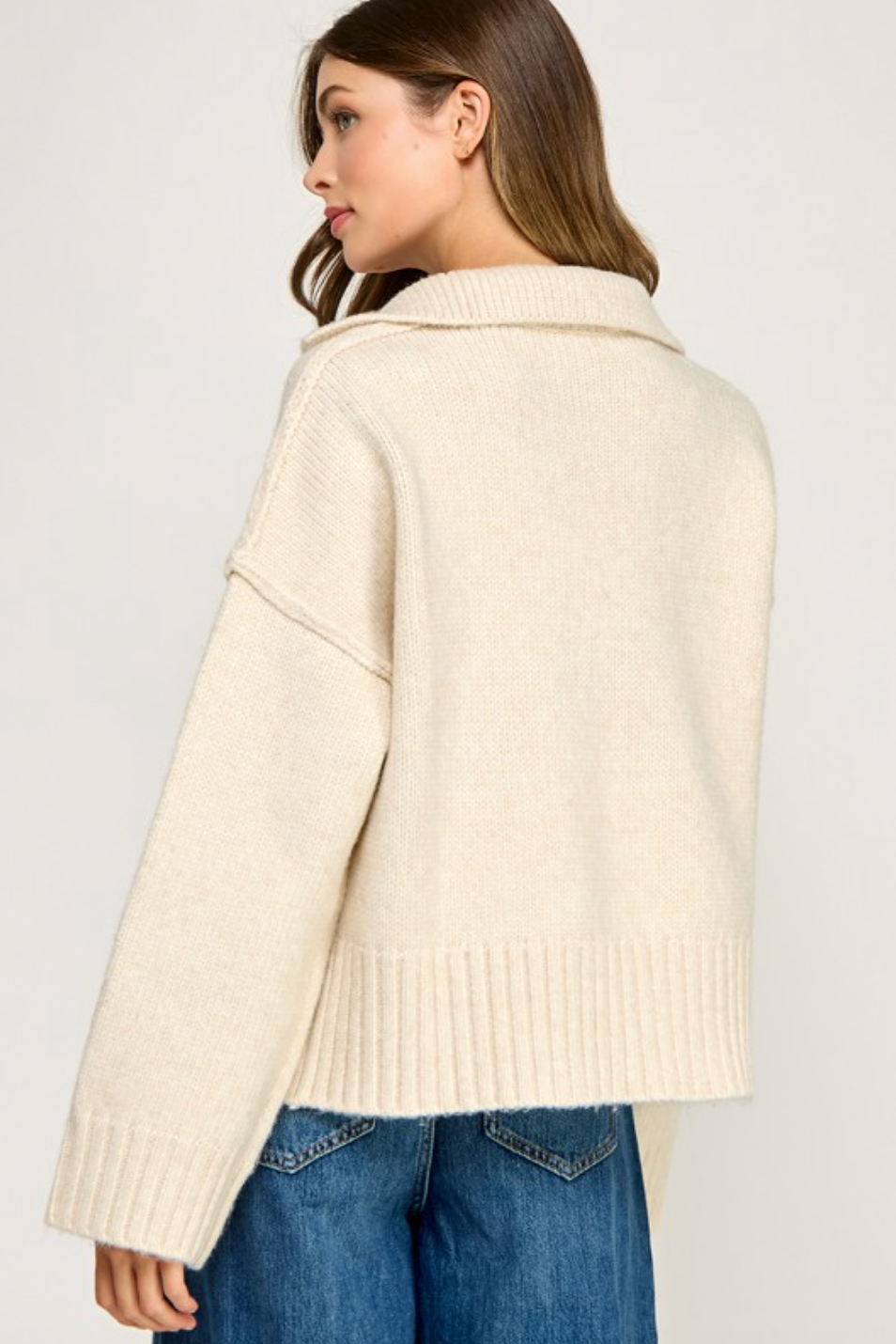 • Elevate your everyday style with this charming polo sweater that's equal parts cozy and put-together.