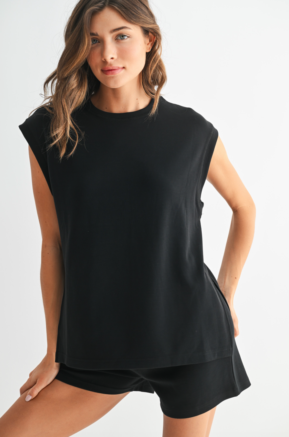 Lounge meets polish in the Laguna Drift Set-a cap sleeve top and shorts duo made from our signature buttery-soft, lightweight scuba fabric.