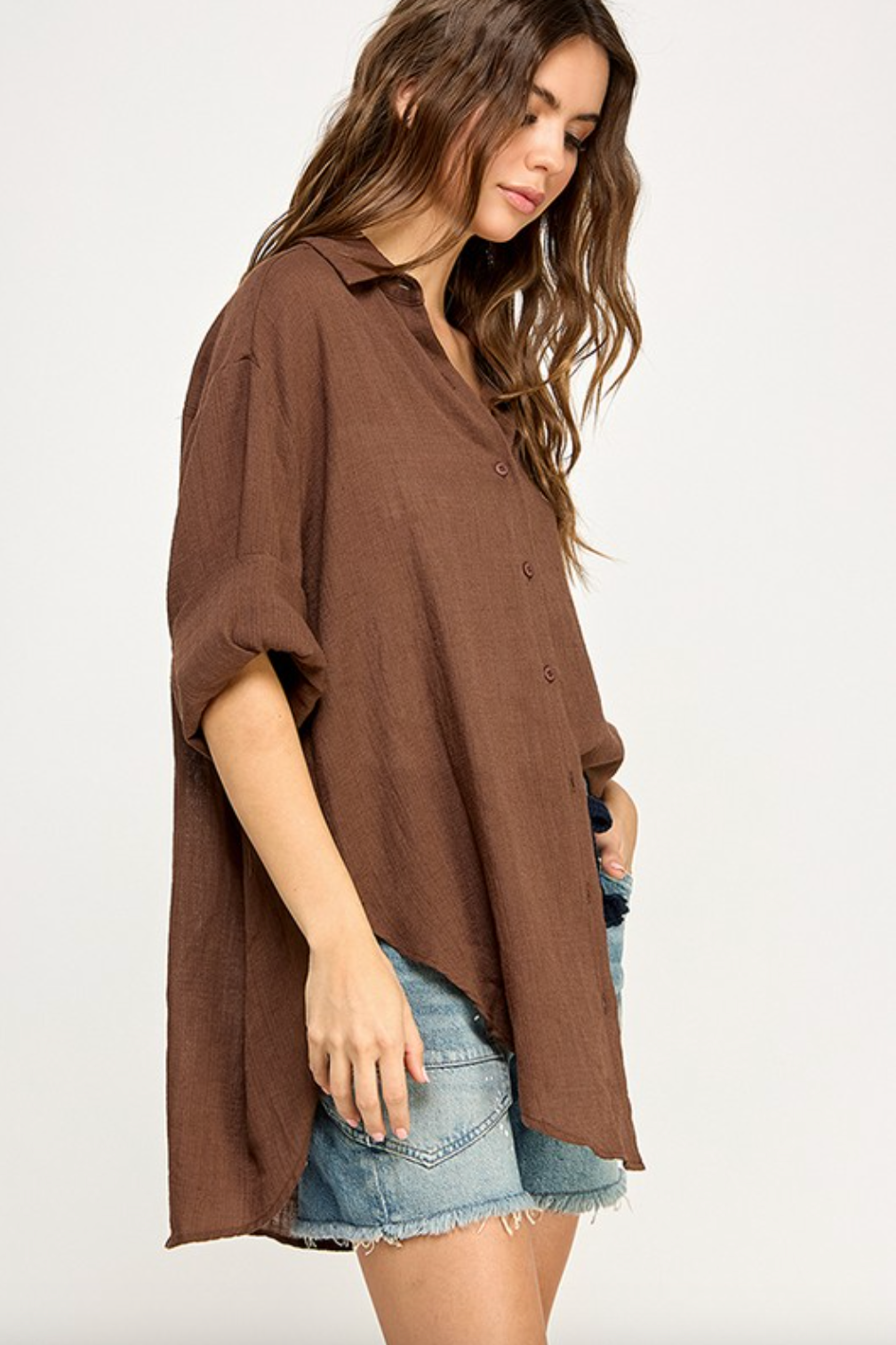WASHED SUPER SOFT SEE THROUGH BUTTON DOWN LOOSE FIT SHIRTS